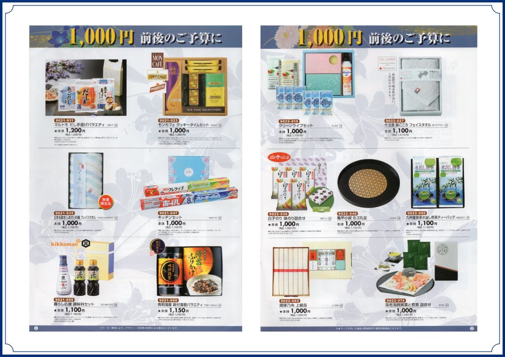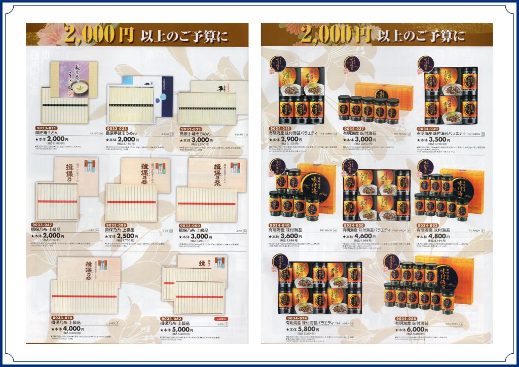 今回のお盆返礼品パンフレットNO.2については、 ブランド品の多いものになっていますので内容が異なります。