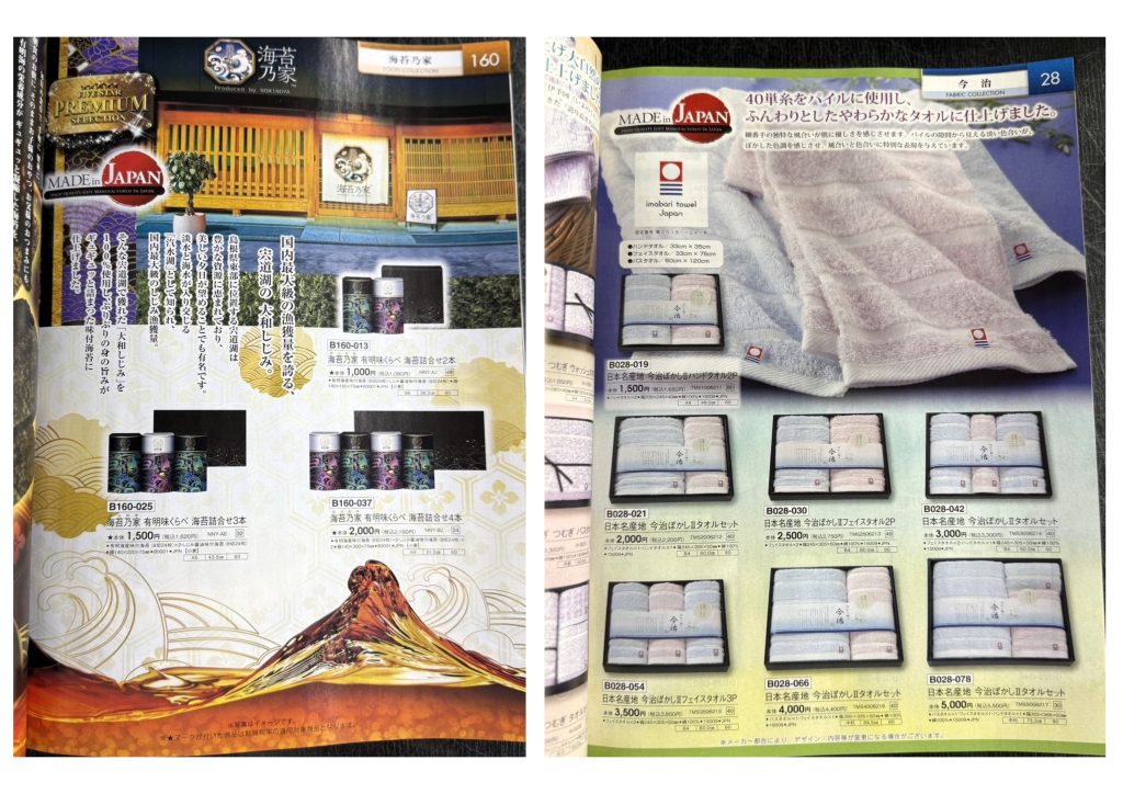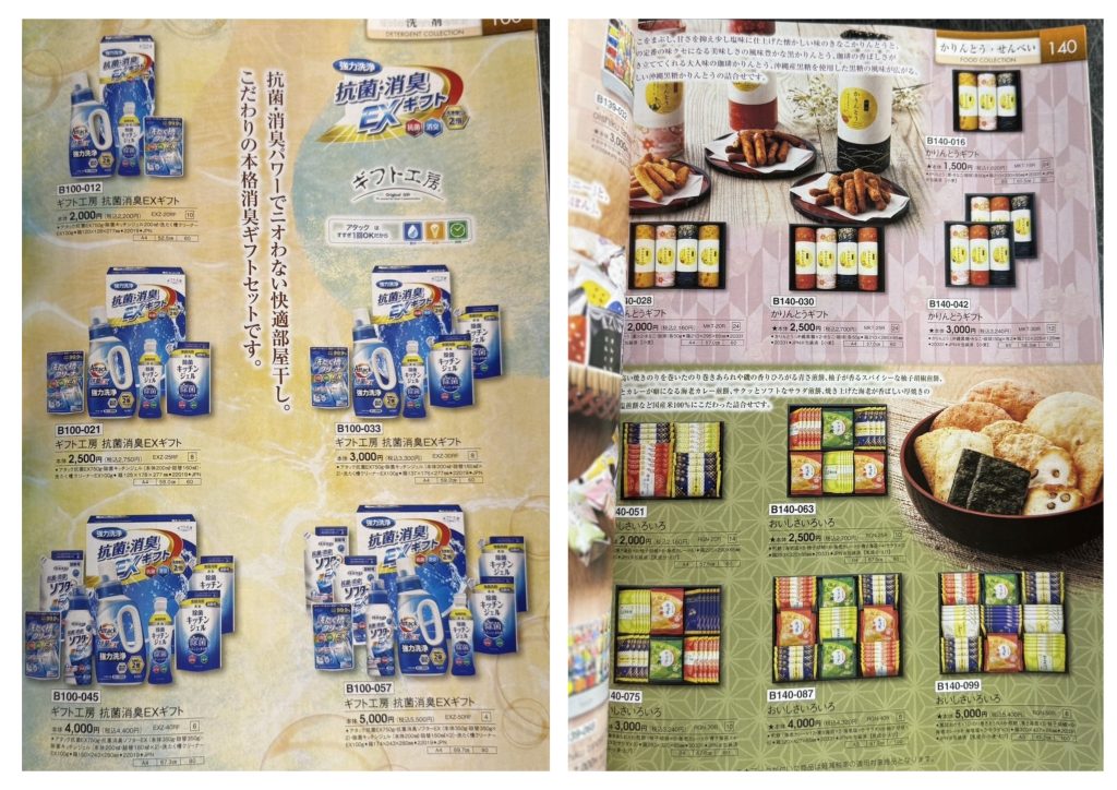 カタログギフト ➡ 本体より2割引き(システム料除く) ※カタログ冊子を郵送し、冊子の中からご希望の商品を選んでいただくギフトです。 ●宅配運賃¥500/1件(北海道・沖縄・離島除く) ●システム料¥900/1冊 ●消費税別 お香典額1万円以上の返礼品として、ご利用いただいております。