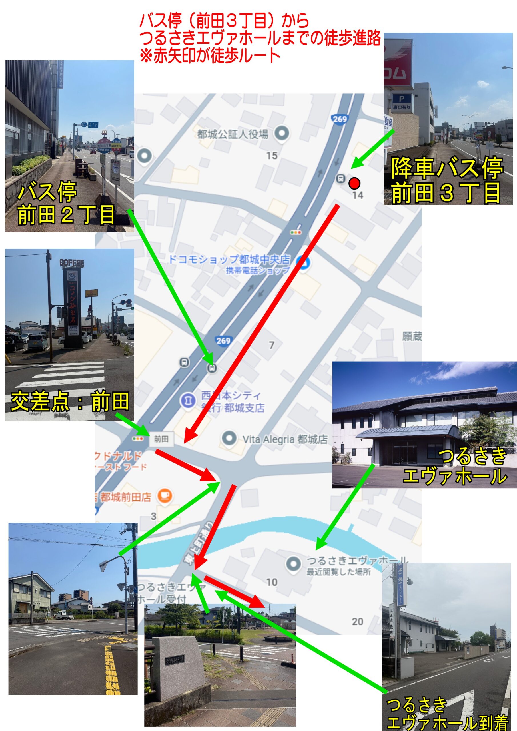 空港から「つるさきエヴァホール」の高速バス停車場は、手前の「前田3丁目」でも距離的には変わりません。本日は、こちらの方も写真を撮ってきましたのでお知らせいたします。また時刻表もあわせてご確認下さい。