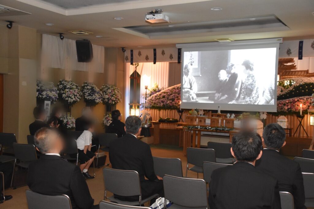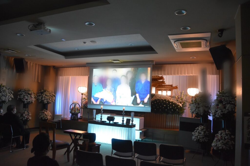 弊社では、ご生前の故人の写真を葬儀後、大画面で放映することも承っております。