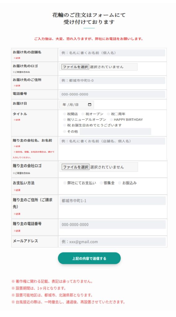 ご注文の際は、ぜひご利用下さい。 ご入力後は、大変、恐れ入りますが、弊社にお電話をお願いします。