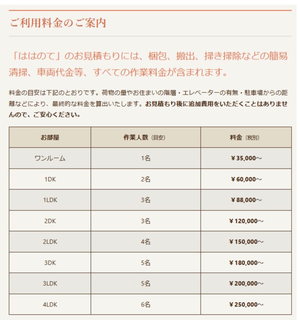 お費用についても、明瞭にホームページに掲載されていますので、まず御見積を含め、ご相談ください。弊社にご相談いただいても対応致します。