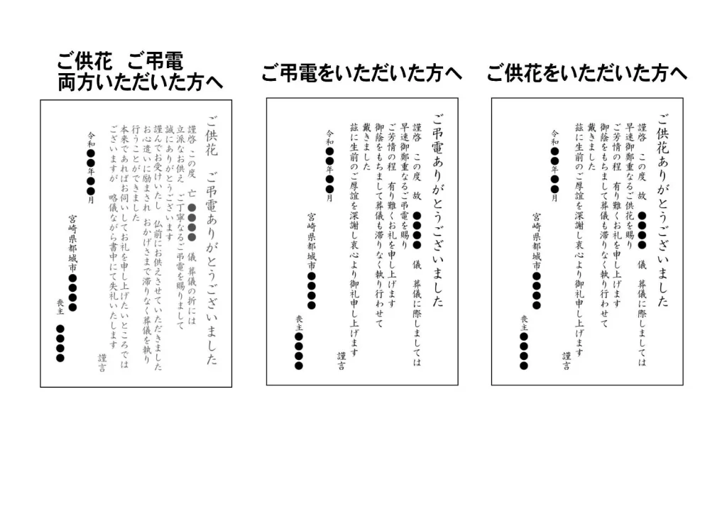 2. 供花の御礼文作成と郵送